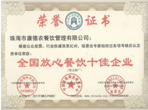 全国放心餐饮十佳企业